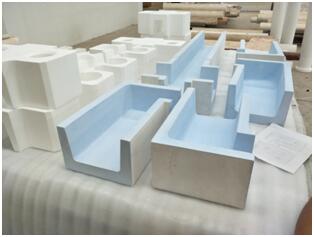 帶涂層分流盤各種流槽具有不粘鋁性能和保溫性能,可有效降低鋁水流動中的熱量損失和減少溫降。具有很低的導熱系數、良好的保溫性能和優異的熱震穩定性和體積穩定性,更具有與液態鋁和鋅不潤濕的性能。澆注料施工后的材料表面光滑,不粘鋁劑的添加,使材料具有優良的不粘鋁性能。